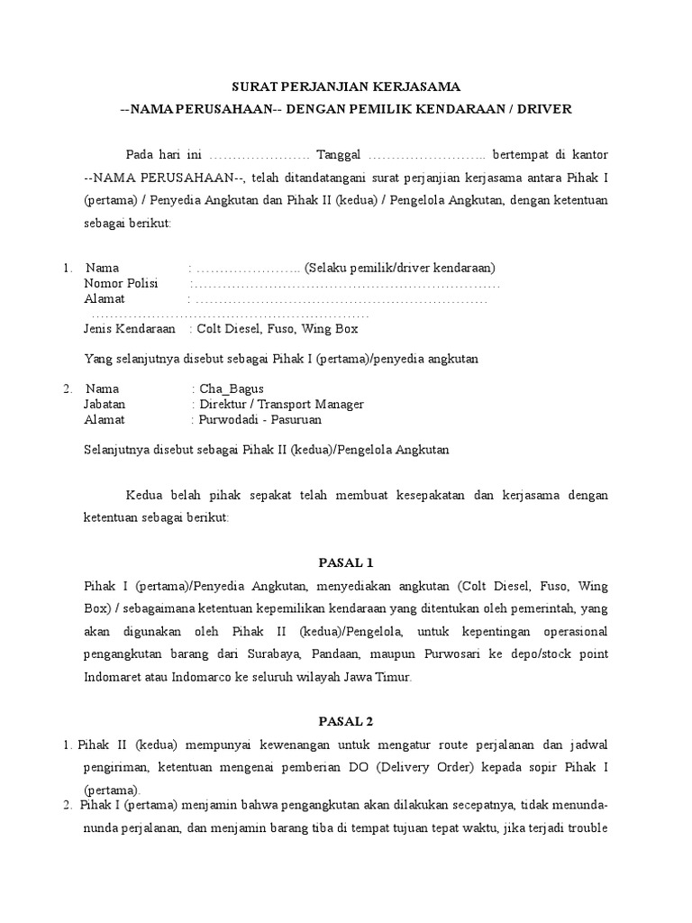 Surat Perjanjian Kerjasama Pengankutan Barang Pdf